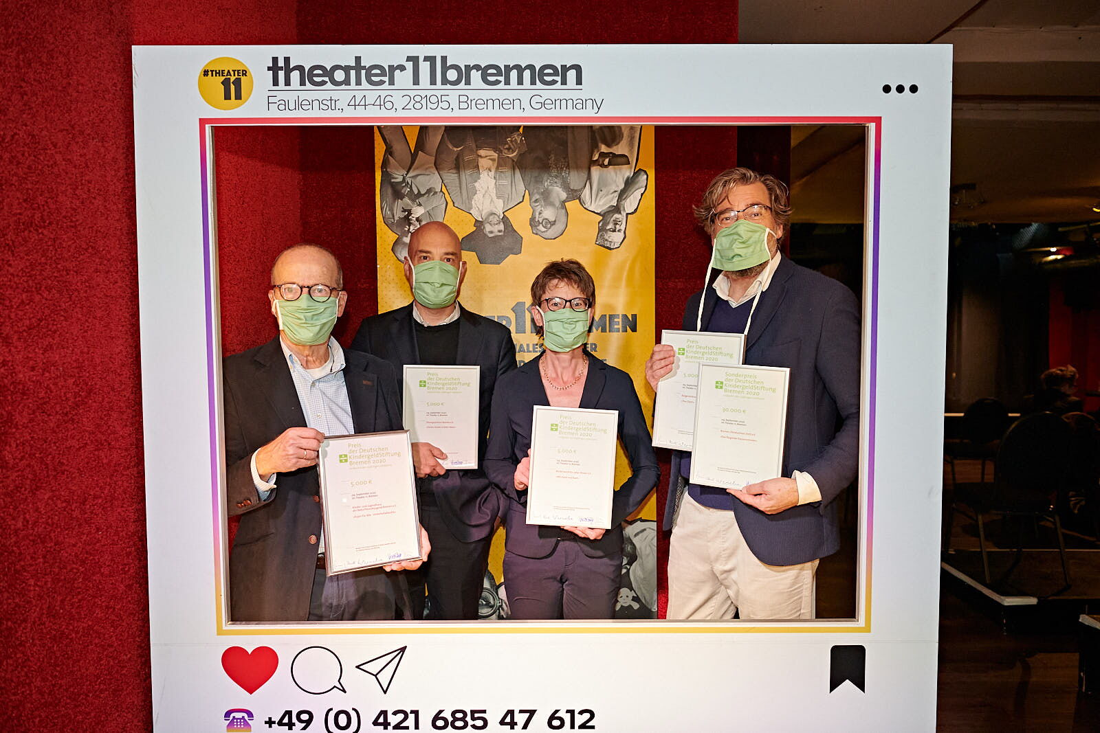 Die kleinste Preisverleihung, die die Welt je gesehen hat, geht mit einem kleinen Umtrunk auf Abstand zu Ende. Glückliche Preisträger, glückliche Stiftungsratsmitglieder gehen aber nicht auseinander, ohne ein großes DANKE zu sagen. Danke an alle Spenderinnen und Spender, allen voran allen die Kindergeldspender, die sich durch ihre monatlichen Spenden solidarisch zeigen mit denen, die nicht auf der Sonnenseite geboren wurden und so Projekte ermöglichen, die Kindern und Jugendlichen zu einem mehr an Chancengerechtigkeit verhelfen.