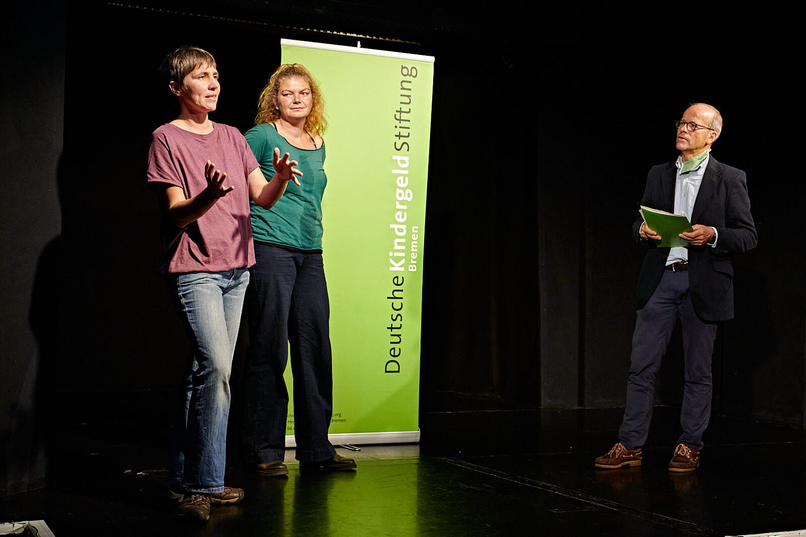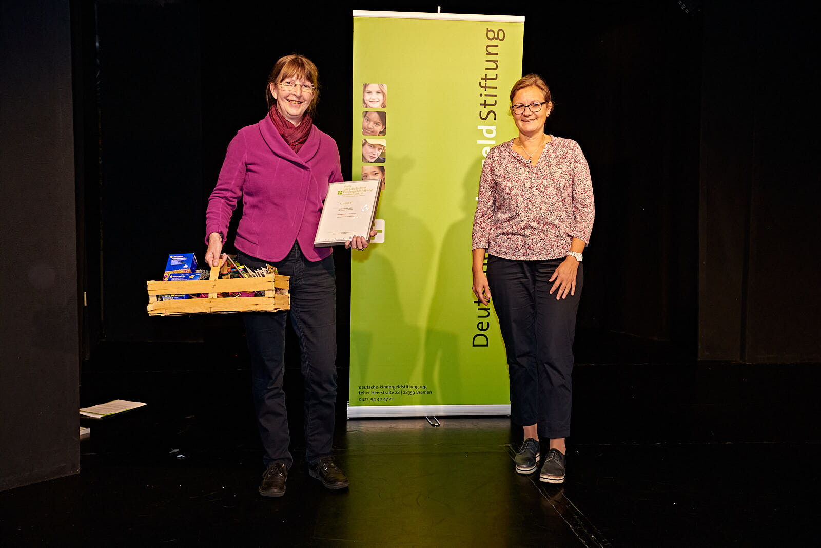 Der Hauptpreis, in Höhe von 30.000,- € verteilt auf drei Jahre, geht an „Das fliegende Klassenzimmer“, ein Projekt des Bremer Literaturhauses in Kooperation mit der Oberschule in den Sandwehen in Bremen Lüssum. „Das fliegende Klassenzimmer ist eigentlich kein Projekt“, so Stiftungsratsmitglied und Projektpate Bertold Frick, „sondern eine Schulphilosophie. Wir freuen uns, dass wir das große und in Teilen auch freiwillige Engagement des Kollegiums mit dem Preis unterstützen können.“ In der Schule mit lebendiger Lesekultur wird Literatur in allen Jahrgangsstufen von der 5. bis zur 10 Klasse gelebt. Ob Lesegarten, Poetry Slam, Radiofeatures oder Schreibwerkstätten, die ganze Schule atmet Literatur. Heike Müller vom Bremer Literaturhaus und Andrea Merrath von der Oberschule zeigen sich strahlend und überglücklich über den Motivationsschub, der dieser Preis auch ist.